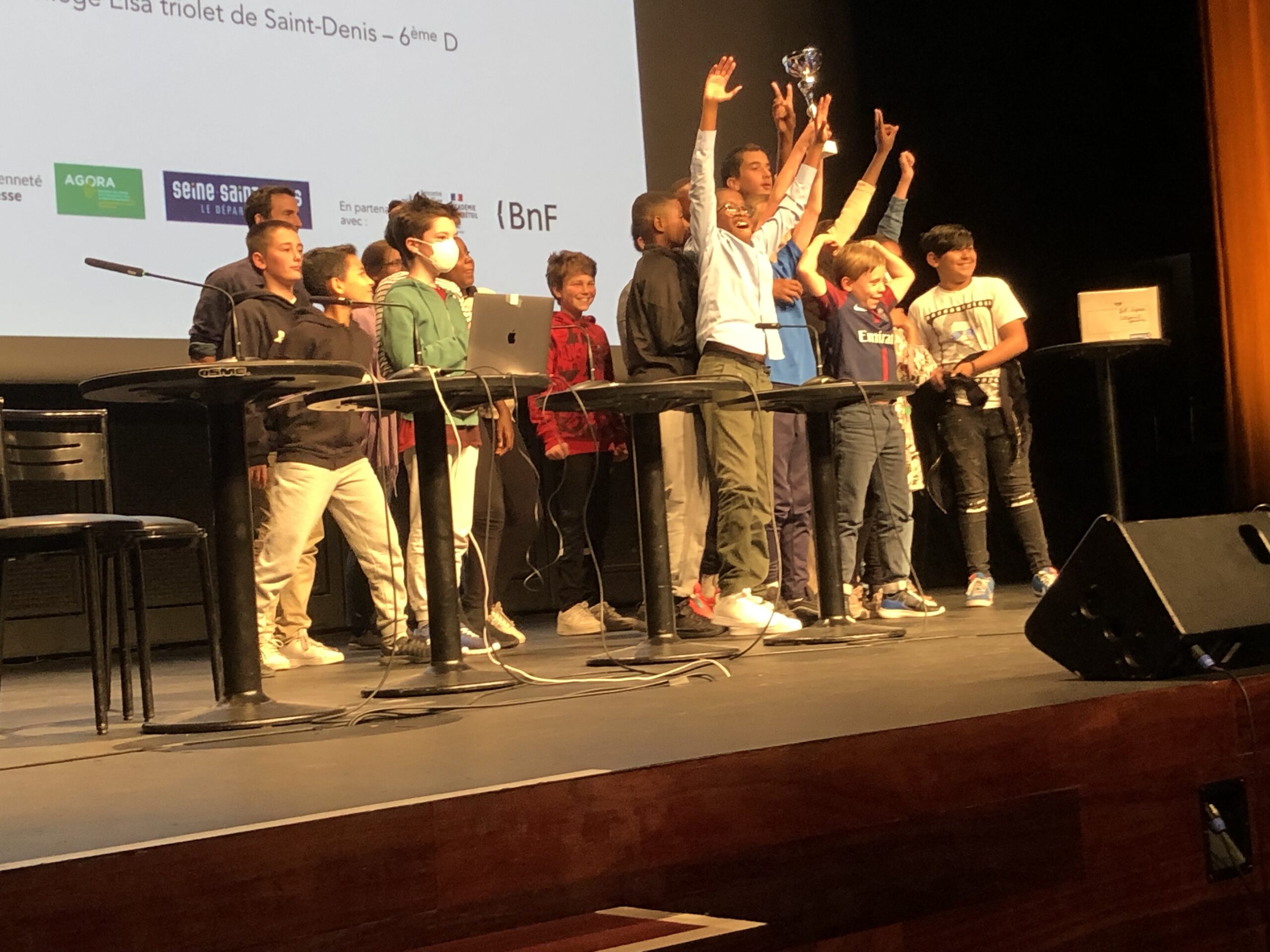 En juin 2024, les jeunes collégiens étaient réuni sur la scène de la BnF (Bibliothèque Nationale de France) pour présenter leurs productions journalistiques.